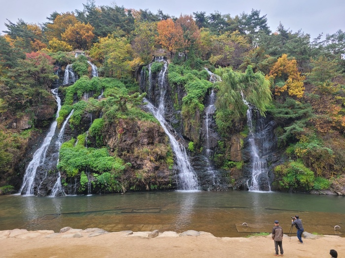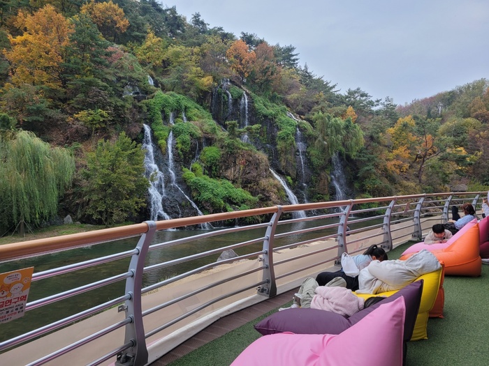 폭포는 인공폭포다. 높이 25m, 폭 60m로 2011년에 조성됐다고 한다. 인공폭포라고 하니 약간 감흥이 떨어지기도 한다. 이런 인공폭포를 만든다고 하면 반대도 많았을 텐데 10여년이 지난 지금의 결과는 대흥행이다.