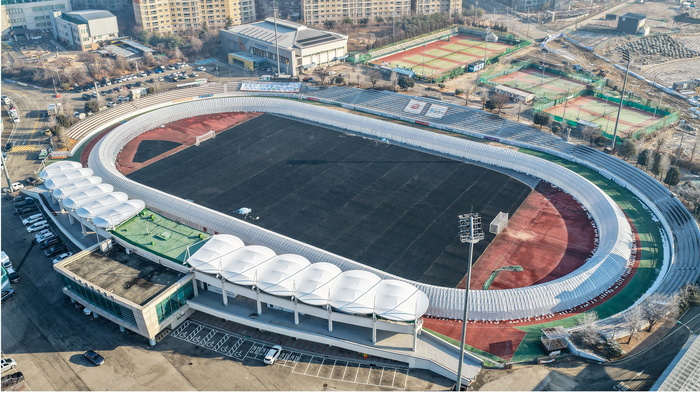 | 포천시 종합운동장에 동계맞춤형 육상트랙 전경/사진:포천시 제공 |