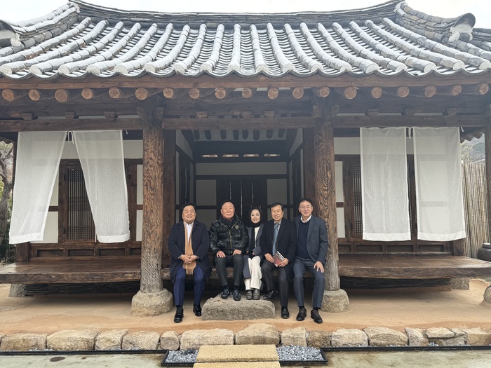 | 이달 15일 갤러리 투힐미를 찾은 (사진 왼쪽부터) 최태진 대한건설협회 서울시회 회장, 김상수 건설공제조합 운영위원장, 김현선 갤러리 투힐미 관장, 이충재 한국건설산업연구원 원장, 이석용 건설공제조합 이사장 등이 기념사진을 촬영하고 있다. /사진=정석한기자 jobize@ |