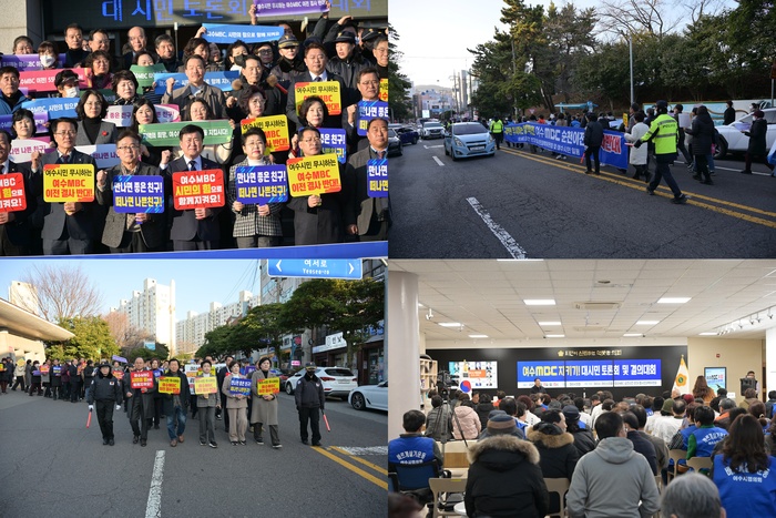 지난 15일 여수시와 시의회, 시민사회단체로 구성된 범대위는 시의회 청사 1층 공감 뜨락에서 '여수MBC 지키기 대시민 토론회 및 결의대회'를 열었다. 이날 행사에는 정기명 시장과 백인숙 의장, 시민 등 300여 명이 함께했다.