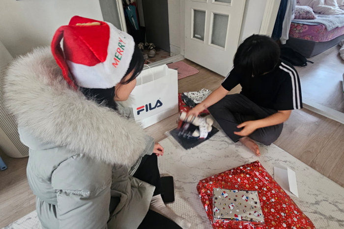 | 한국해외인프라도시개발지원공사(KIND) 직원이 지난 12일 다문화가정 청소년을 방문해 선물을 전달하는 모습. /사진: 한국해외인프라도시개발지원공사(KIND) 제공 |