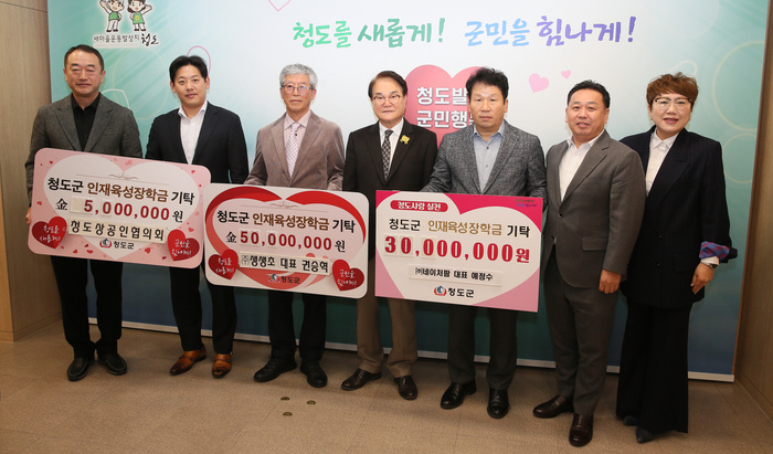 김하수 청도군수는 “어려운 경제 여건 속에서도 지역의 미래를 위한 인재 육성에 뜻을 모아주신 권승혁 청도상공인협의회장님을 비롯한 회원 여러분께 진심으로 감사드린다”며 “기탁해 주신 소중한 장학금은 우리 청도의 인재들이 꿈을 키우고 미래를 준비하는 데 소중히 사용하겠다”고 말했다.