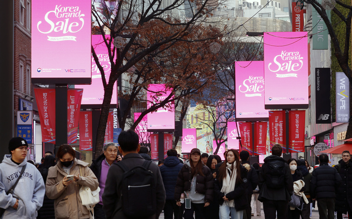 2026 코리아그랜드세일이 시작된 17일 서울 중구 명동 거리가 관광객들로 북적이고 있다. 코리아그랜드세일은 방한 관광 비수기에 외국인의 관광과 소비를 촉진하기 위해 다양한 분야의 민간 참여를 바탕으로 2011년부터 개최하고 있다. 올해는 12월 17일부터 내년 2월 22일까지 개최한다.