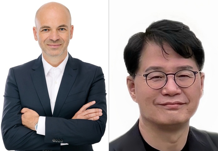 | 만프레드 하러 현대차ㆍ기아 R&D본부장(사장, 왼쪽)과 정준철 현대차ㆍ기아 제조부문장(사장)./사진: 현대차그룹 제공 |