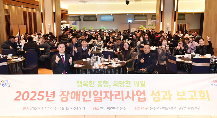 진주시는 지난 17일 MBC컨벤션에서 진주에서 1년간 장애인일자리사업에 참여한 참여자와 수행기관, 각 기관·단체장 200여 명이 모인 가운데 ‘2025년 장애인일자리사업 성과보고회’를 개최했다고 18일 전했다.