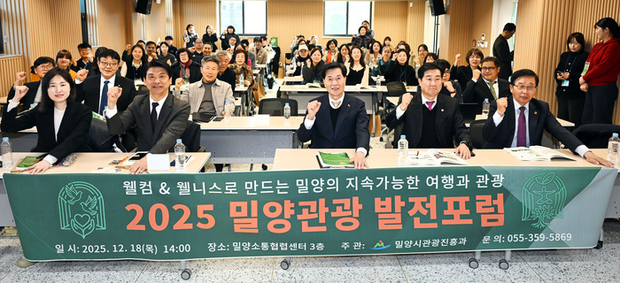 밀양시(시장 안병구)는 18일 밀양소통협력센터에서 ‘2025 밀양관광 발전포럼’을 열고, 밀양형 지속가능관광 전략을 모색했다.