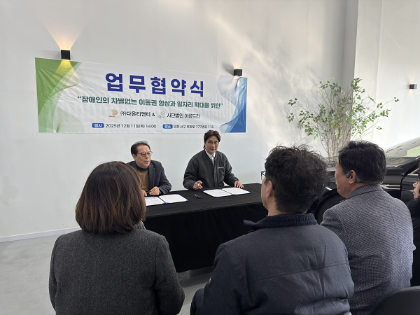 장애인 복지차량 전문 제작업체 다온케어(대표 고필권)가 사단법인 아름드리(대표 고만규)와 장애인 이동권 향상 및 취업 지원을 위한 업무협약을 체결했다.