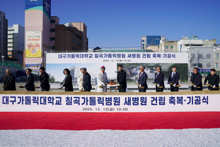 간삼건축은 지난 12일 대구 북구 칠곡중앙대로 일원 새병원 건립 부지에서 기공식이 열렸다고 21일 밝혔다. 칠곡가톨릭 새병원은 대지면적 1만1830㎡에 연면적 2만4210㎡, 지하2층∼지상6층 규모로 조성되며, 2028년 상반기 준공 및 개원을 목표로 한다
