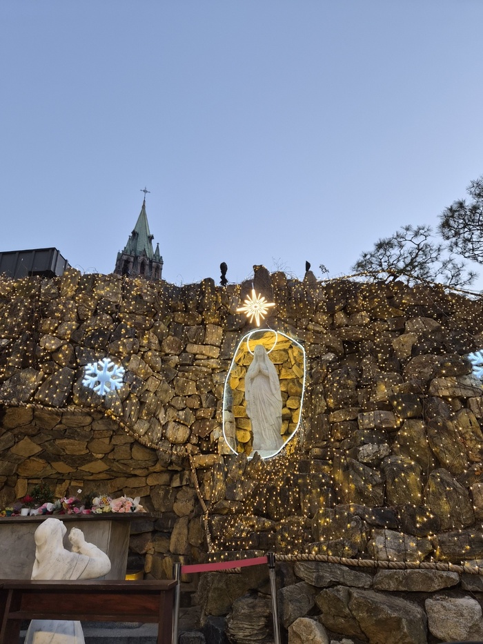 성탄절을 앞둔 지금도 구경꾼들이 많다. 시끌벅적한 명동 거리를 지나 성당으로 오르면 아기 예수가 탄생해 말구유에 눕혀졌을 때의 모습을 만나게 된다. 성당에서는 항상 크리스마스를 앞두고 아기 예수의 탄생 장면을 연출한다.
