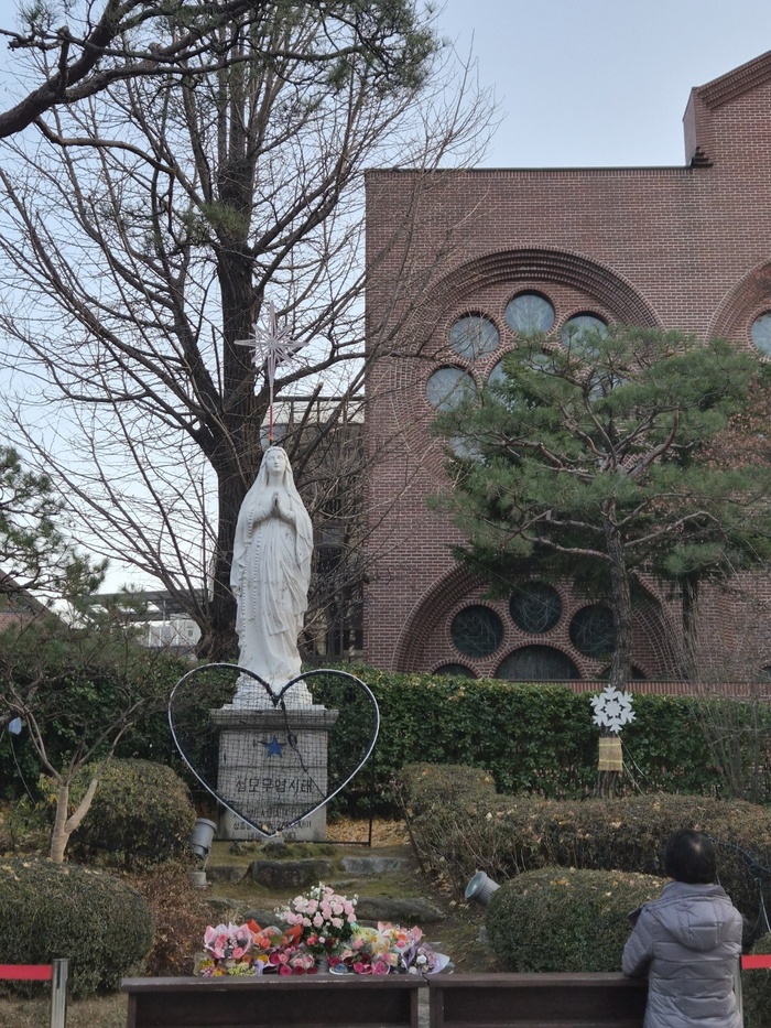 너무 오픈된 곳이라 꺼려진다면 성당 뒤편에도 마리아 상과 기도하는 장소가 있다. 좀 더 차분하다. 사진만 찍는 사람, 잠깐 목례하는 사람, 고개를 숙이고 기도하는 사람, 누군가는 한참을 무릎 꿇고 기도한다. 그의 간절한 소망이 이뤄지기를….