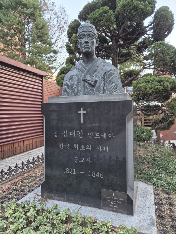 지하성당에서 나오면 천주교 성인 김대건 안드레아의 흉상을 만난다. 한국 최초의 사제 순교자라고 쓰여 있다.