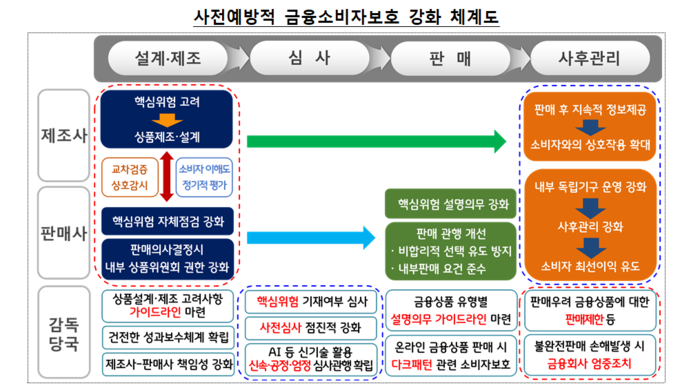 또한, 상품의 설계·제조단계에서부터 판매-사후관리에 이르는 금융상품 전 생애주기에 걸쳐 단계별 금융소비자보호를 강화한다.