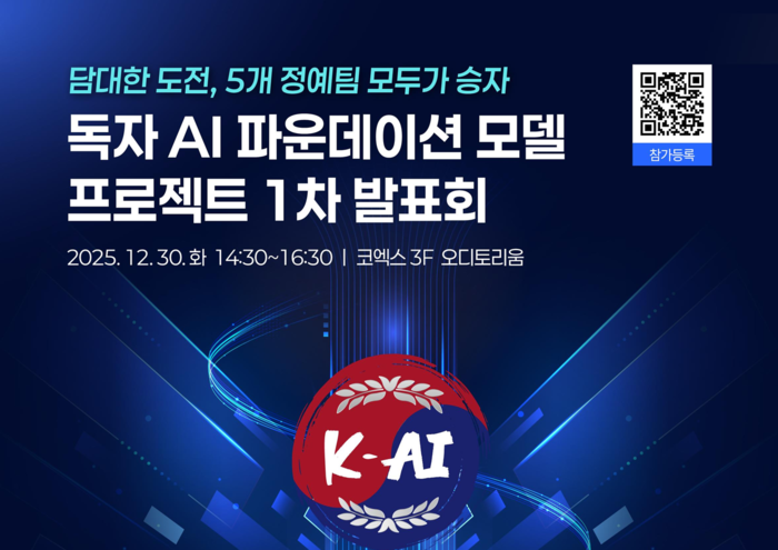 과학기술정보통신부와 정보통신산업진흥원은 오는 30일 오후 서울 코엑스 오디토리움에서 ‘독자 AI 파운데이션 모델 프로젝트 1차 발표회’를 개최한다고 22일 밝혔다. 이번 행사는 국정과제인 ‘세계에서 AI를 가장 잘 쓰는 나라 구현’의 일환으로 추진 중인 독자 AI 파운데이션 모델 개발 사업의 첫 공식 성과 공유 자리다.