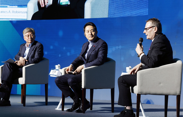 | 이날 포럼에서는 지난해 노벨경제학 수상자 제임스 로빈슨 교수의 기조연설, 오세훈 서울시장과 경제·복지 관련 국내외 석학과 대담, 소득보장제도의 미래에 대한 논의가 이어졌다. |