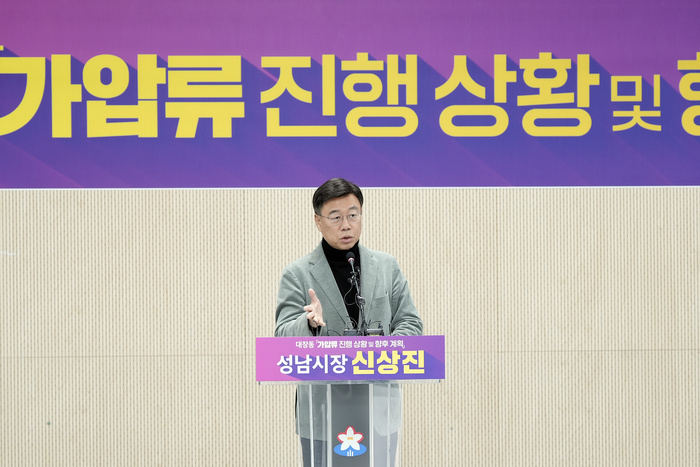 | 신상진 시장이 23일 기자회견을 열고 대장동 일당을 상대로 한 가압류 신청에서 5173억원이 인용 결정을 받았다고 밝히고 있다. / 사진 : 성남시 제공 |
