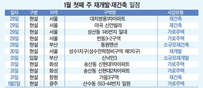 | 1월 첫째 주 재개발ㆍ재건축 사업 일정. /사진:대한경제 DB |