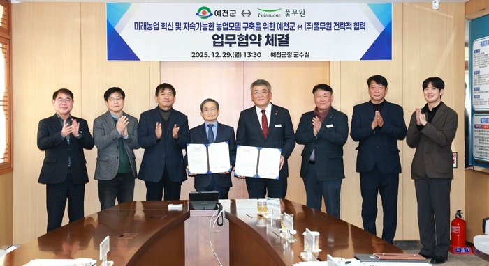 예천군 관계자는 “글로벌 식품기업 풀무원과의 협력을 통해 예천군이 스마트농업 선도 도시로 도약하는 전환점이 될 것”이라며 “행정적·제도적 지원을 통해 지역 농업과 기업이 상생하는 성공 모델을 만들어 나가겠다”고 말했다.