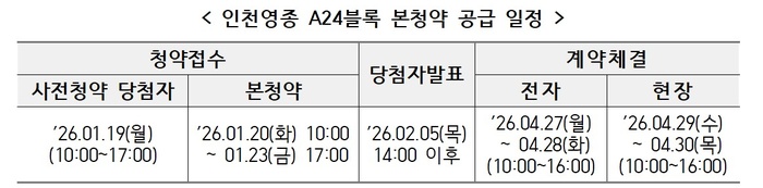 인천영종 A24 블록은 총 641가구로, 사전청약 물량 276가구를 제외한 365호가 일반분양으로 공급된다. 사전청약 당첨자가 본청약 신청자격(무주택세대구성원)을 충족하지 못하는 등의 사유로 본청약 신청을 포기하는 경우 일반분양 물량은 늘어나게 된다.