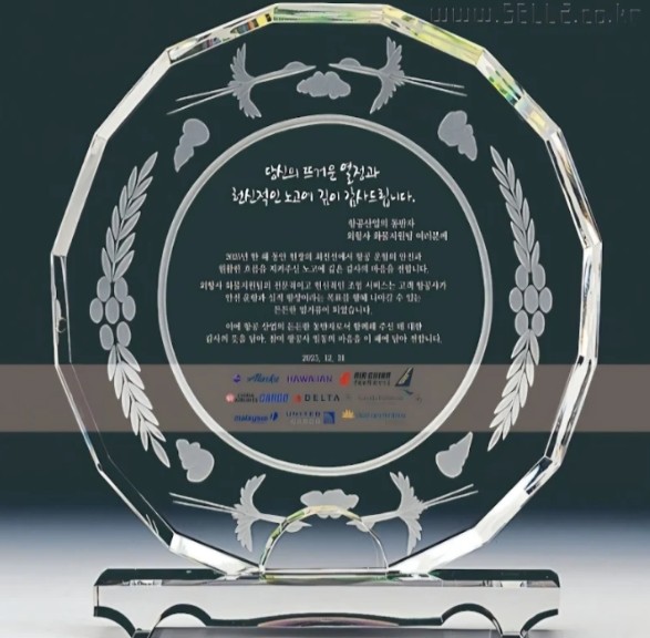 감사패 수여식은 31일 오후 2시 인천국제공항 화물터미널에서 개최됐으며, 델타항공, 유나이티드항공, 가루다 인도네시아 항공 등 9개사 관계자들이 참석해 자리를 빛냈다.