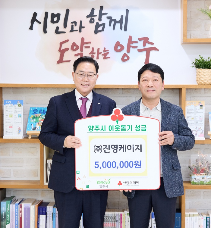 | (왼쪽부터)강수현 양주시장, 나완주 ㈜진영케이지대표/사진:양주시 제공 |