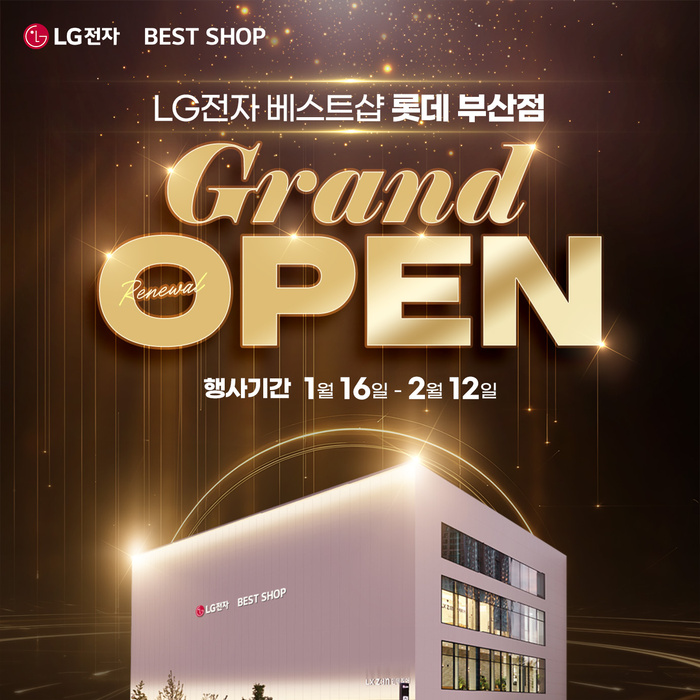 가전 전문 매장 LG전자 베스트샵 롯데 부산점은 대대적인 매장 리뉴얼을 마치고 이를 기념해 오는 1월 16일부터 2월 12일까지 ‘리뉴얼 그랜드 오픈 가전 세일 행사’를 진행한다고 밝혔다.