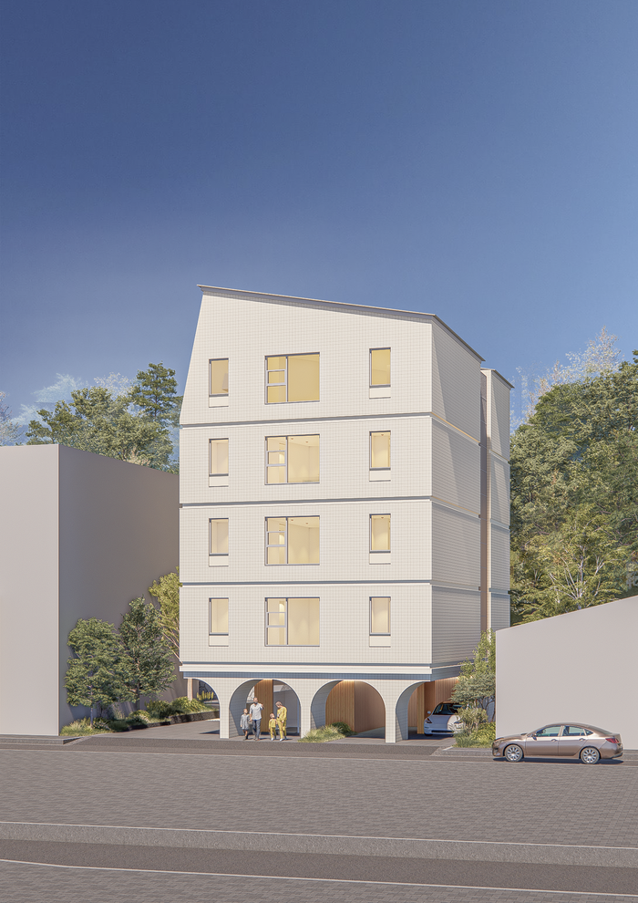 이 건물은 기능과 안전성을 고려해 구조를 분리했다. 1층 필로티 주차장과 계단ㆍ엘리베이터는 RC조로 하고, 2∼5층 주거공간은 경골목구조를 적용한다. 케이스그룹 관계자는 “주차장이 들어서는 1층은 화재 확산을 막고자 불연재인 RC를 적용했다”며 “북미 등 경골목구조 주택이 일반화된 지역에서도 주차장이 있는 1층은 RC조로 시공하는 것이 보편적”이라고 설명했다.