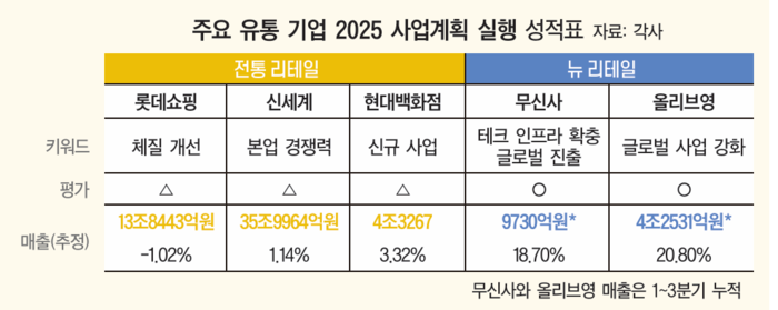 전통 유통사 ‘빅3’는 체질 개선과 선택적 투자를 통해 변화의 물꼬를 텄으나, 매출 성장세는 여전히 더딘 모습이다. 반면 무신사와 올리브영은 글로벌 확장과 기술 투자를 예고대로 실행하며 두자릿수 성장을 이어가고 있다.