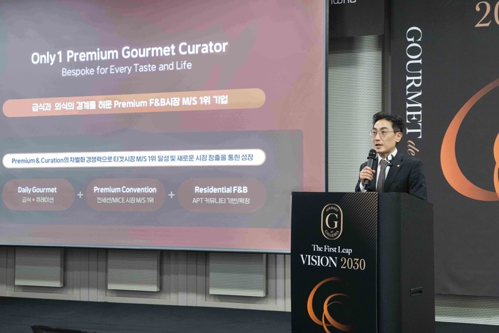 차기팔 고메드갤러리아 신임 대표는 지난 5일 비전 선포식을 열어 "급식과 외식의 경계를 허물어 프리미엄 식음료(F&B) 시장의 새 판을 짜겠다"며 이 같이 밝혔다. 이날 비전 선포식에는 신세계푸드 급식 부문을 인수해 고메드갤러리아 출범을 주도한 김동선 아워홈 미래비전총괄 부사장도 참석했다.
