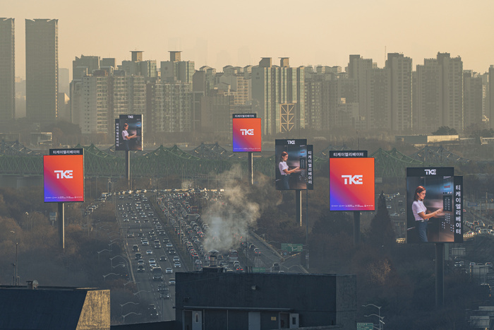 | TK엘리베이터가 올림픽대로 옥외광고판에 브랜드 광고를 내걸었다. 조 대표 취임 후 브랜드 이미지 제고를 위한 첫 마케팅 활동의 일환이다./ TK엘리베이터 제공 |
