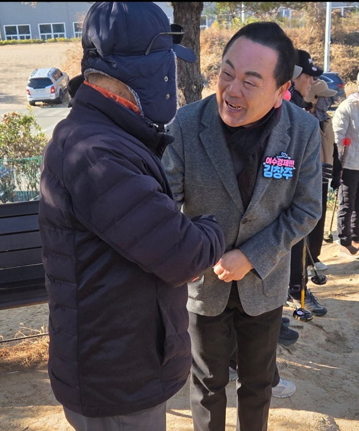 | 김창주 여수시장 출마 예정자가 시민들과 인사를 나누고 있다./사진:김창주 출마 예정자 제공 |