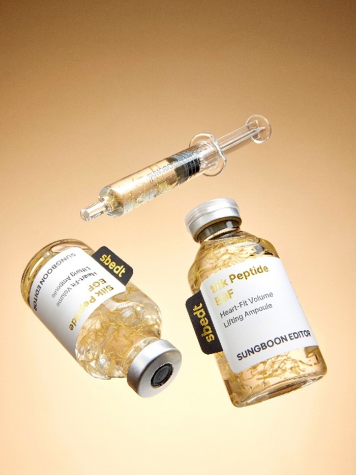 실크펩타이드 앰플은 2022년 첫 출시 이후 꾸준한 리뉴얼을 거쳐 EGF 하트핏 포뮬러를 적용해 재탄생한 이 제품은 피부에 닿는 순간 금색 실이 부드럽게 흡수되는 독특한 제형을 구현했다.