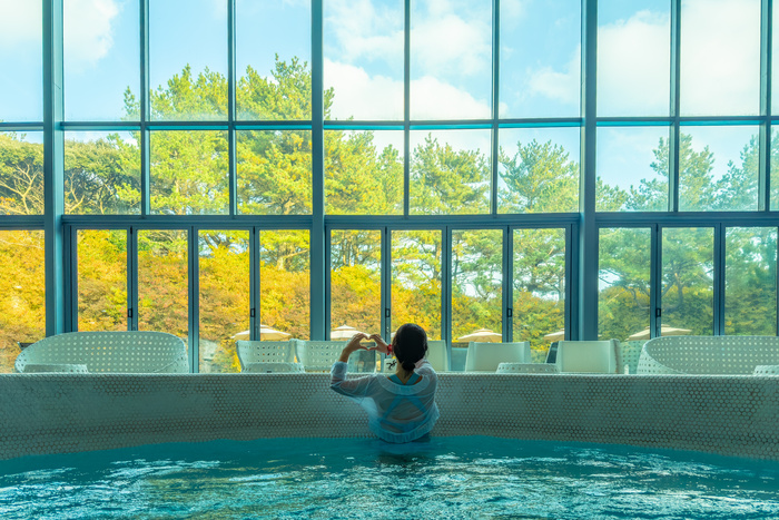1층에 들어서면 해수풀인 ‘딸라소풀’을 만난다. 바다를 의미하는 그리스어 ‘thalassa’와 치료를 뜻하는 ‘therapy’ 가 합쳐진 말로 딸라소테라피는 ‘해양치유’를 의미한다. 수압 마사지와 몸에 부담이 없는 수중운동이 가능하다.