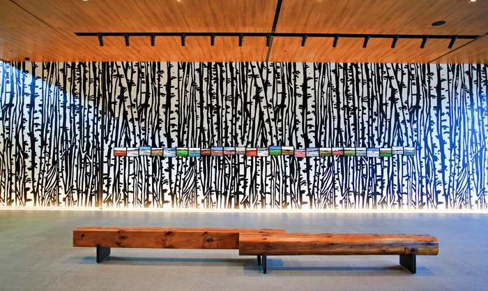방문객들이 가장 먼저 만나는 로비에는 세계적인 현대미술 작가 리처드 우즈(Richard Woods)가 정선의 자연에서 영감을 얻은 작품과 타닥타닥 타오르는 모닥불을 배치해 첫인상부터 포근하다.