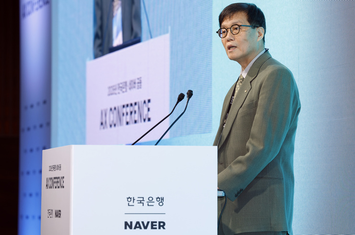 | 이창용 한국은행 총재가 21일 오후 서울시 중구 한국은행에서 열린 한국은행-네이버 공동 AX 컨퍼런스에서 환영사를 발표하고 있다./사진=안윤수 기자 ays77@ |