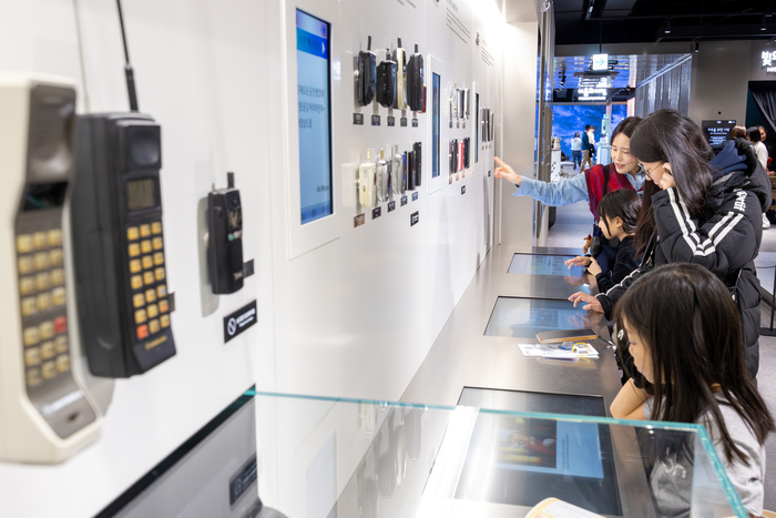 | 온마루 ‘시간의 회랑’에서 관람객들이 이동통신의 역사를 배우고 있다. / 사진: KT 제공 |