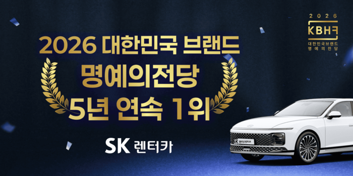 [대한경제=강주현 기자] SK렌터카가 ‘2026 대한민국 브랜드 명예의전당’에서 5년 연속 1위를 차지했다.