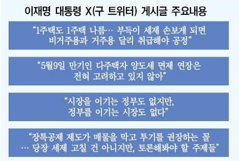 이재명 대통령이 지난 23일에 이어 25일 사회관계망서비스(SNS) 게시글에서 오는 5월9일 시행 유예기간이 끝나는 다주택자 양도세 중과에 대해 “(유예기간) 연장은 전혀 고려하고 있지 않다”고 밝히면서 주택시장이 요동치고 있다.