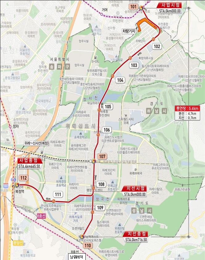 마천역~복정역~남위례역 5.4㎞