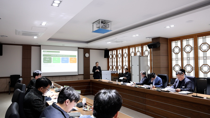 | 군청 제2회의실에서 ‘군위군 파크골프장 운영관리방안 수립용역 중간보고회’를 개최했다. / 사진 : 군위군 제공 |