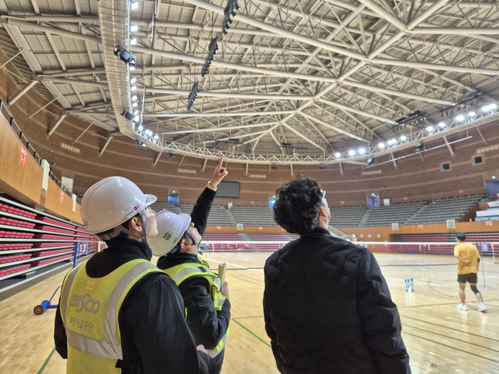 | 공단 AI기술혁신팀은 상반기 점검 대상 시설 중 하나인 부산 금정구 소재 스포원파크 실내체육관과 테니스경기장을 대상으로 정밀안전점검에 착수했다. / 사진 : 부산시설공단 제공 |