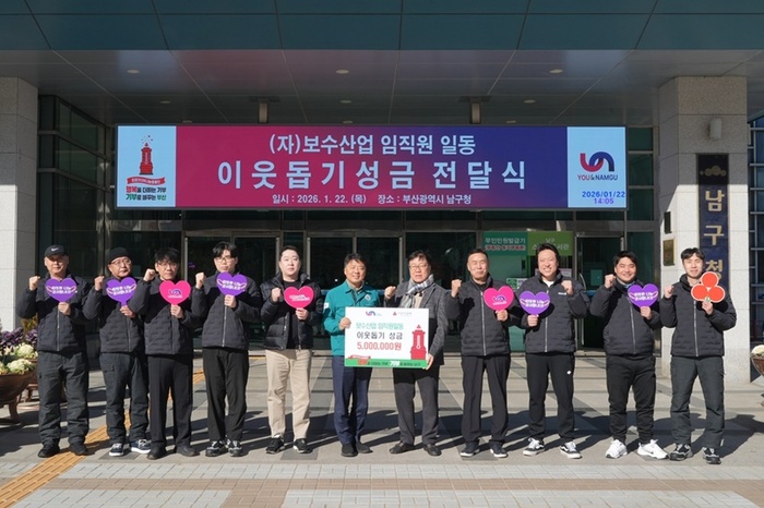 (자)보수산업(대표 이종연)은 지난 22일 부산 남구청(구청장 오은택)을 방문해 직원들이 십시일반 정성을 모아 마련한 성금 500만 원을 기부했다고 26일 밝혔다.