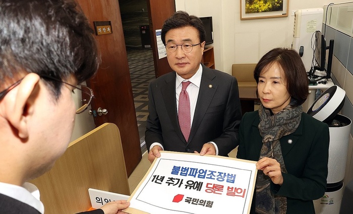 이어 “그러나 이재명 정부와 더불어민주당이 일방적으로 통과시킨 노란봉투법은 오는 3월10일 시행을 앞두고 있음에도 불구하고 후속 제도 정비와 명확한 해석 기준이 마련되지 않아 산업현장의 혼란을 초래할 수 있다는 우려가 지속적으로 제기되고 있다”고 덧붙였다.
