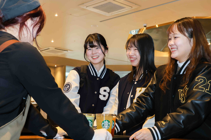| 스타벅스 매장에서 대학생들이 메뉴를 받고 있다./사진=스타벅스코리아 |