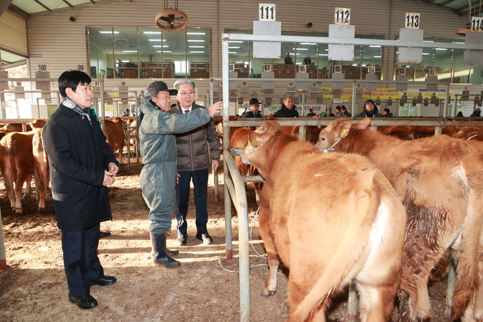 이번 경매시장은 2026년 첫 등록우 경매시장으로 의령군은 가축시장 운영 실태와 차단방역 체계 점검을 위해 현장 방문을 실시했다.