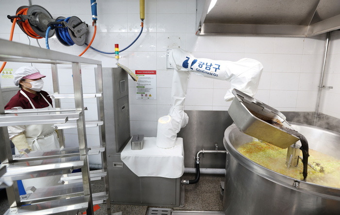 [대한경제=김정석 기자] 서울 강남구 학교 급식에 조리 로봇이 등장했다. 조리 종사자 만족도가 높은 것으로 나타남에 따라 로봇을 고도화해 확대ㆍ적용하겠다는 것이 강남구의 계획이다.