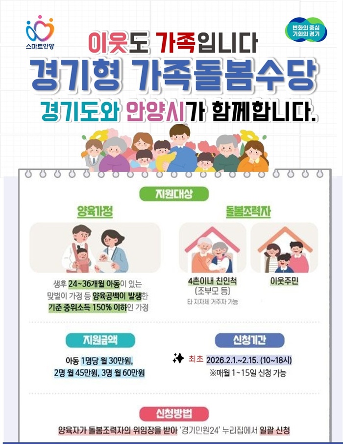 안양시가 2월 1일부터 ‘경기형 가족돌봄수당’ 신청을 접수한다.