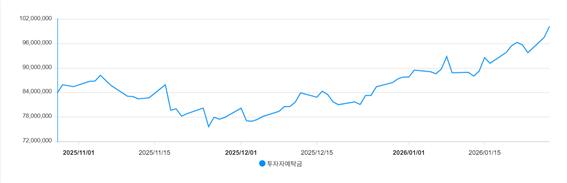 투자자예탁금이 100조원 위로 올라간 것은 이번이 처음이다. 투자자예탹금이 지난해 초 50조원 수준이었던 점을 감안하면 1년 새 2배 가량 증가했다. 특히 작년 말(87조8290억원)과 비교하면 채 한 달도 안돼 13조원 가량 늘었다.