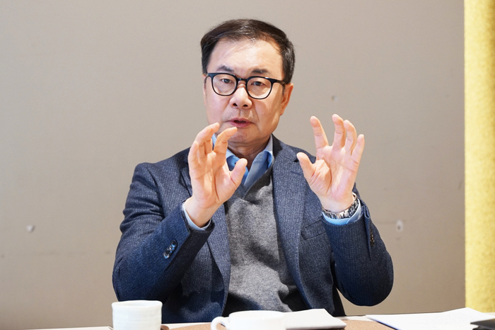 | 조재천 대한승강기협회장이 28일 서울 중구에서 열린 신년 기자간담회에서 질문에 답하고 있다./ 승강기협회 제공 |