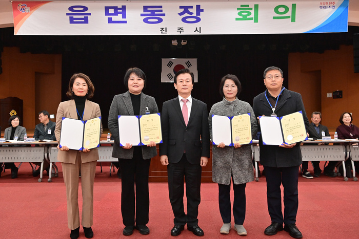 진주시는 지난 27일 읍면동장 정례 회의를 열고 ‘2025년 읍면동 종합평가’에서 우수한 성적을 받은 읍면동을 ‘우수기관’으로 표창했다고 28일 밝혔다.