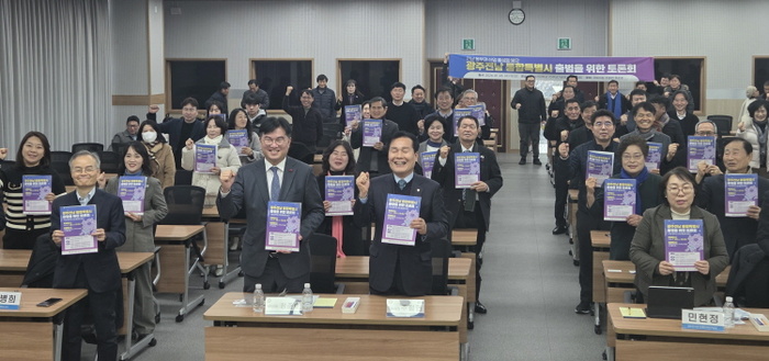 주철현 의원은 환영사에서 "전남·광주 통합을 인구 감소와 지역 소멸, 수도권 중심 구조에 대응하기 위한 선택"이라고 규정하며 "국가 균형발전을 위한 새로운 전환점이 돼야 한다"고 강조했다.